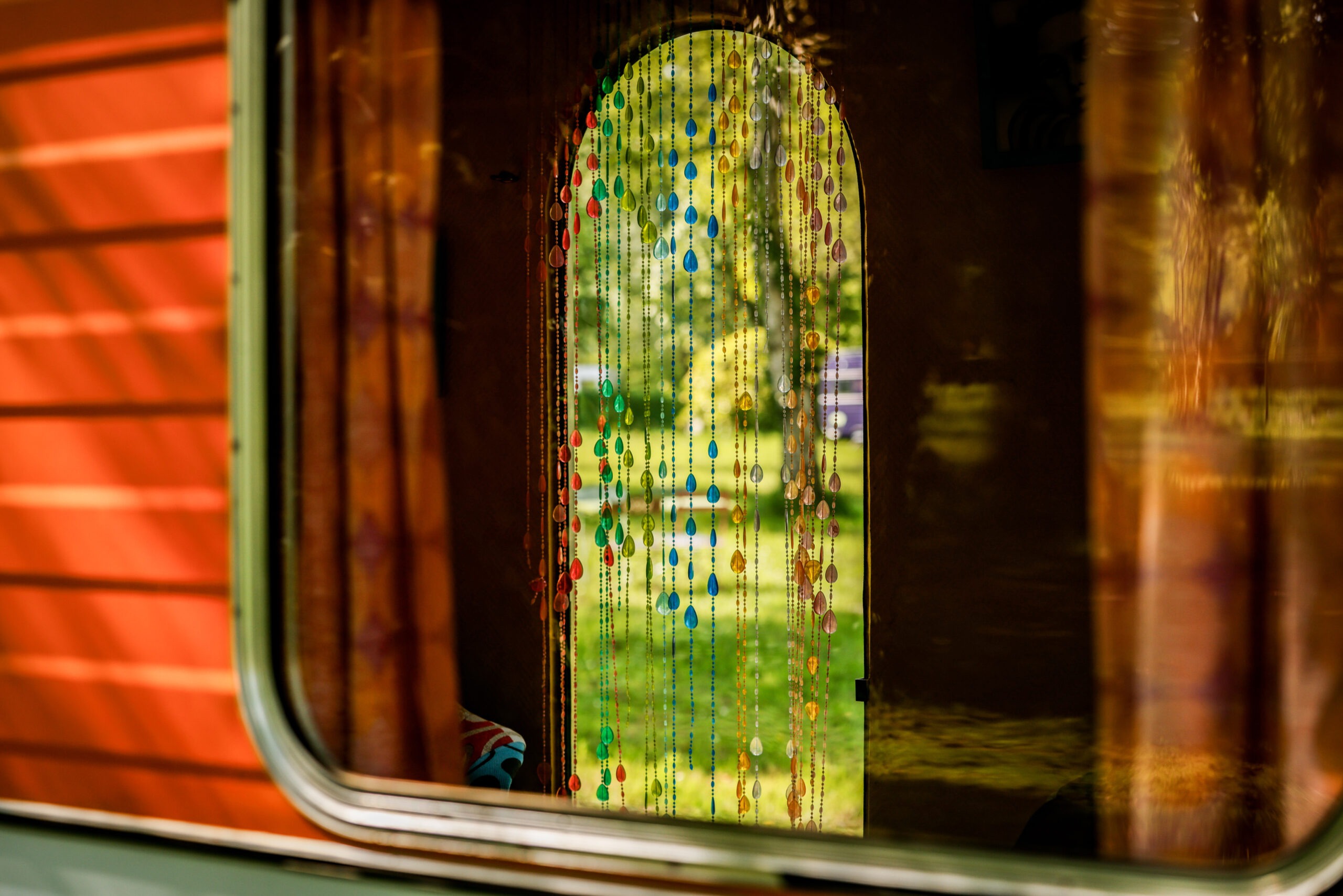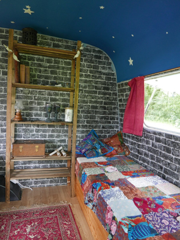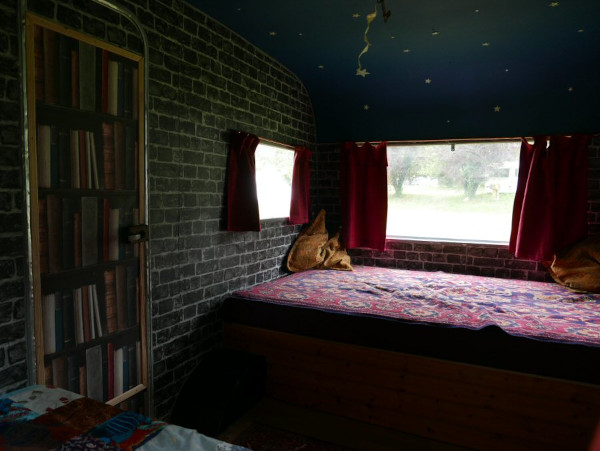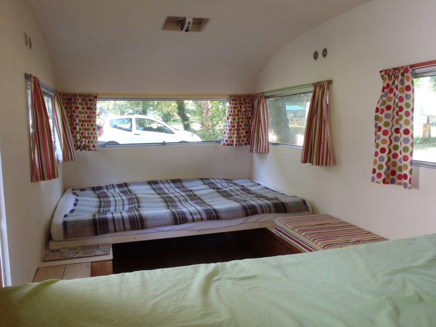 The spaceship! With its cockpit at the front and bunks at the rear, this original caravan has two double bunk beds for an extraordinary stay.